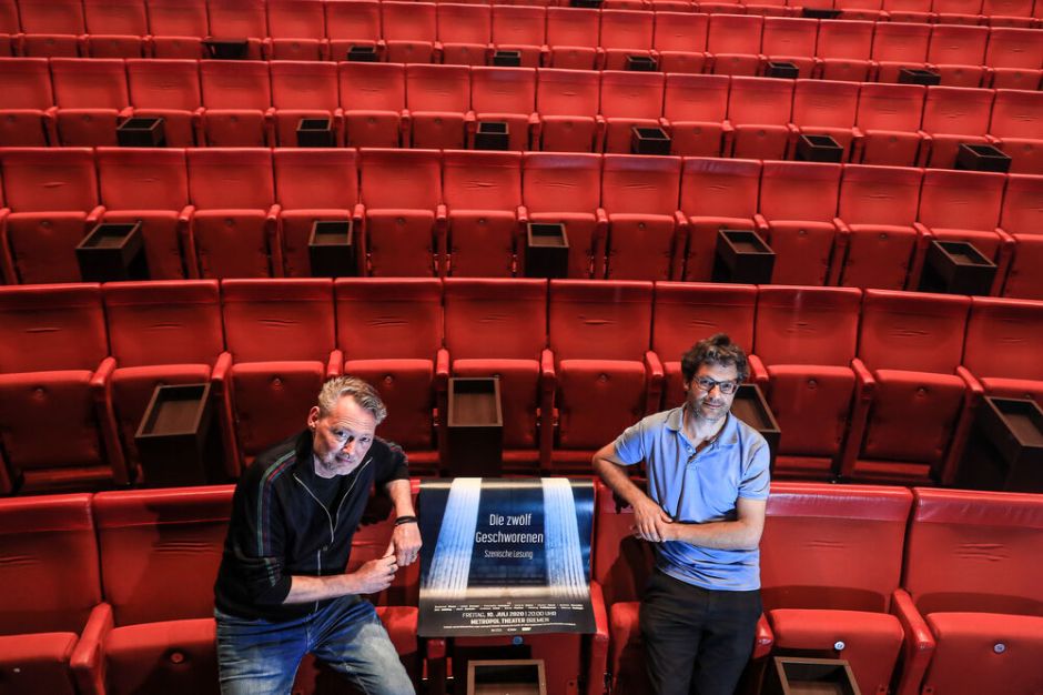 Nach dem Corona-Lockdown öffneten im Sommer langsam wieder die kulturellen Einrichtungen und präsentierten kreative Formate, um Künstler wieder vors Publikum und Publikum wieder vor die Künstler zu bekommen. Im Metropol-Theater (ehemals Musical-Theater) in Bremen bot Theater-Chef Jörn Meyer (Foto: rechts) verschiedenen kleineren Bühnen eine Heimstätte, da er dort pandemiekonforme Bedingungen bieten kann, um wieder Kultur anbieten zu können. Als erste Produktion hatte am 10. Juli 2020 das Stück „Die zwölf Geschworenen“ als szenische Lesung Premiere und konnte als Lebenszeichen der Bühnenschaffenden nach den Corona-Beschränkungen angesehen werden. Moderator, Schauspieler und Regisseur Dirk Böhling (Foto: links) rief das „theaterwerk Bremen“ ins Leben, um mit wechselnden Ensembles kleinere Bühnenformate wie Liederabende, Live-Hörspiele oder Literatur an verschiedenen Spielorten umzusetzen. Für seine Premieren-Produktion versammelte er ein illustres Ensemble aus Schauspieler*innen der verschiedenen Theater und der freien Kulturszene Bremens. Aufgrund der positiven Publikumsresonanz wurde das Stück am 9. Oktober 2020 nochmals aufgeführt.