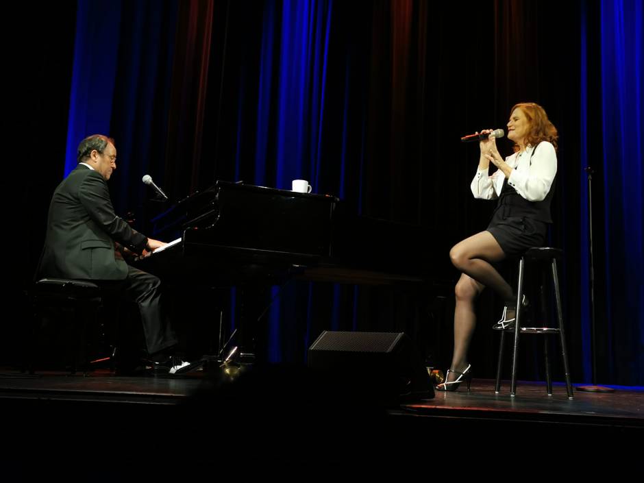 An ihrer Seite saß wieder Peter Grabinger am Klavier, das er so virtuos zu spielen verstand, und auch Ton-Mann Pit Lenz musste abermals das Dunkel seines Mischpults verlassen, um sowohl vokal wie auch „mundharmonikalisch“ im Rampenlicht zu glänzen. Pe Werner griff sogar höchstpersönlich zur Klampfe und zupfte gekonnt die Saiten ihrer Gitarre.